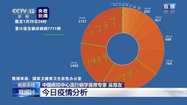 白岩松:从饼状图一眼能够看到,这三天(确诊病例)就占去了总体确诊病例这么大的比例。但是它跟武汉“ 封城 ”,“ 封城 ”这个词虽然不准确,但是可能很多的观众更容易懂,就姑且用它。恰恰这三天出在封城的第五、第六、第七天,对得上吗?您怎么分析这三天的高峰值?