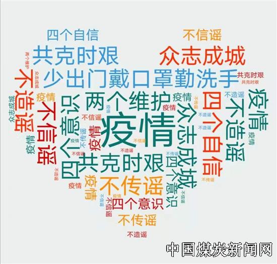 【本网讯】近日,家住山西晋煤集团金驹公司社区的大学生霍艺佳精心设计防控疫情的心型“微词云”,守望相助、群防群控,表达对全国上下共同防控新型冠状病毒感染的肺炎疫情的一片爱心。
