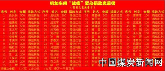 此次,由机加车间党支部组织的“献爱心,勇争先”的捐款活动,总计接受60人次,共计11500元。
