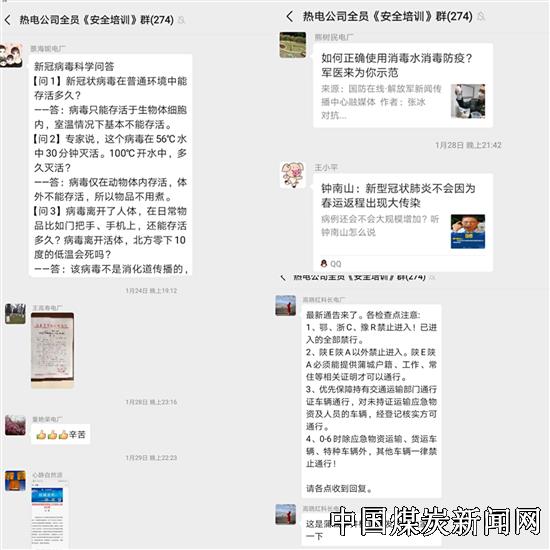 线上做网络正能量的传播者。热电公司团委利用微信、QQ群等平台积极开展线上宣传引导。“口罩的正确佩戴方式”“各地飞机喷洒消毒药水都是谣言”……在公司安全培训群等各个微信、QQ群,青年志愿者及时更新疫情相关情况,普及防控知识。针对微信或网上相关疫情信息庞杂的情况,青年志愿者积极发挥带头作用,在各个微信群发布权威消息并及时辟谣,为积极传播向上能量、树立正确舆论导向发挥了重要作用。