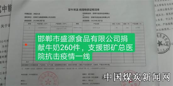 【本网讯】2月7日,邯郸市盛源食品有限公司为邯矿总医院一线医护人员“送温暖”,表示慰问。他们将260件价值12740元的牛奶送到医护人员的手中,表示他们心中的敬意和关怀。
