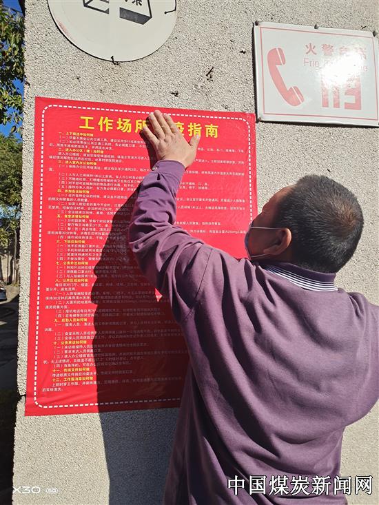一方面,在复工前三天,通过全矿各系统QQ群、微信群里向全矿干部职工发送《工作场所防疫指南》,叮嘱大家认真学习,主动作为,配合相关职能部门做好消杀工作,严格按照《指南》要求做好个人防护;另一方面,联合宣传部门做好《指南》的口播录音,于复工当天,利用井上井下两套广播系统为大家滚动播放;同时,区分不同工作场所、不同区域将《指南》内容剥离分类,制成宣传画,在醒目位置进行张贴。温馨提醒大家上班途中莫着急,戴好口罩才出行;办公室内勤通风,综合消毒严防范;工作中要常勤洗手、多饮水来少互动;就餐时要错峰去,不扎堆来不交谈;下班以后少闲逛,不约饭来不聚餐。