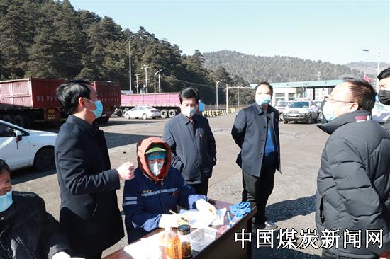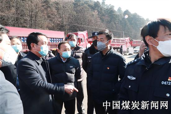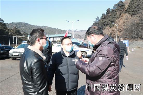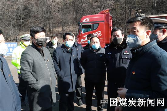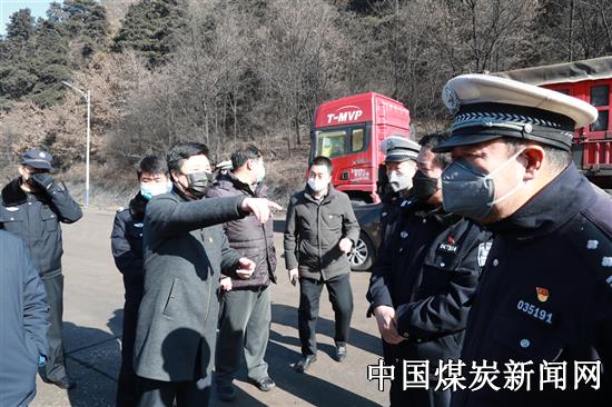 图一:2月12日,蒲白建庄矿业公司党委书记、董事长雷贯亮(左六),党委副书记、总经理苏小卫(左三)及相关领导班子成员来到黄陵县出入境财神梁疫情防控检测点,与黄陵县公安局党委委员、交警大队大队长徐涛,黄陵县店头镇党委书记张永强,腰坪社区派出所所长邓小余、交巡警中队中队长苏玉峰等就如何确保运煤车辆疫情防控工作有序开展,现场进行了交流沟通并形成统一意见,为确保该公司销售畅通,逐步恢复矿井生产创造了有利条件。
