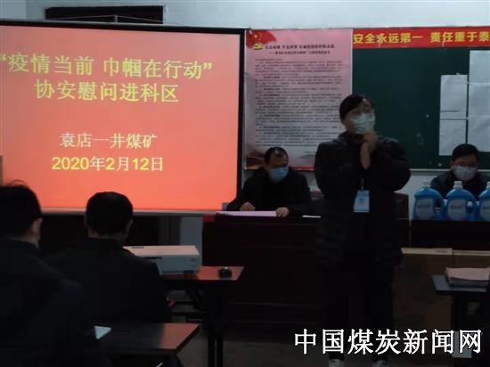【本网讯】2月13日晚8点半,安徽淮北袁店一矿工会女工负责人张盼盼带着四名协安员,走进了综采二区会议室,向夜班职工宣讲疫情防控知识。