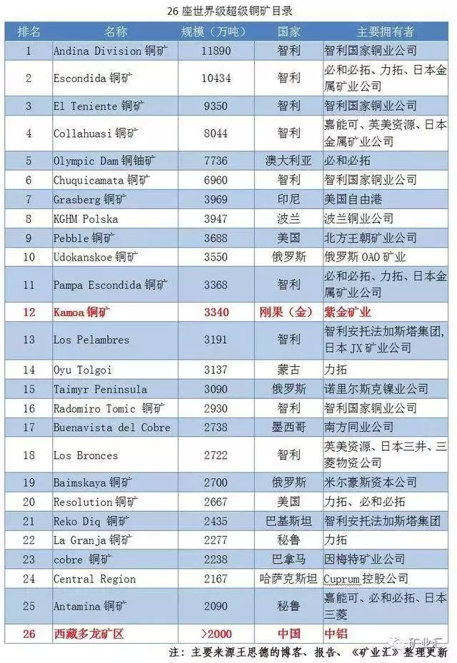 顶级矿业公司重点布局铜矿资产是矿业行业“公开的秘密”,几乎所有的顶级矿业公司都钟爱铜矿。必和必拓、力拓、淡水河谷、嘉能可等都把铜作为自己的核心业务之一。