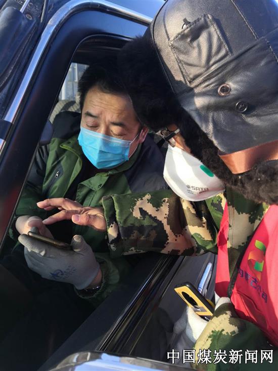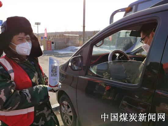 【本网讯】2月14日,南露天煤矿员工在进入矿区保安房门口登记时,在工作人员的指导下,通过手机扫描显示牌上的“内蒙古公司南露天煤矿疫情防控入矿登记”二维码进行扫码登记。