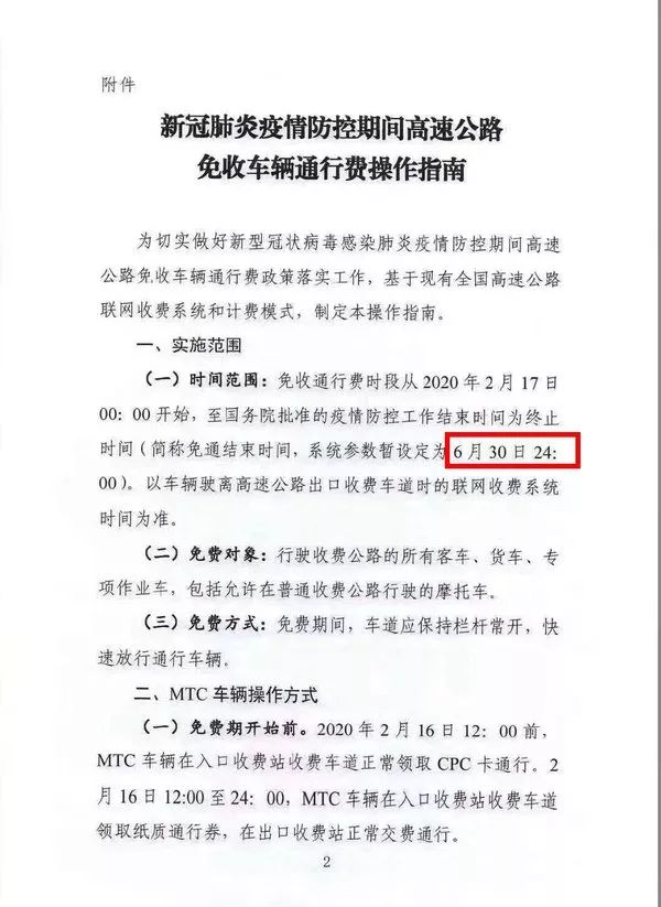 2月15日,交通运输部正式发布通知:2月17日零时起至疫情防控工作结束,全国收费公路免收车辆通行费。根据最新下发操作指南,目前暂定免费时间是到6月30日。不过根据疫情的进展,这个时间有可能提前或者延后。