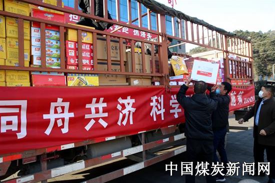 【本网讯】2月18日早10点,一辆满载着抗疫物资的货车停在了建新煤化办公楼前,爱心企业蒲白矿山支护公司驱车100多公里为蒲白建新煤化送来了方便面、火腿肠、牛奶、饮料、石头饼等1170件防控物资,有力支援了建新煤化疫情防控工作。两家企业比肩共担,戮力同心坚决打赢疫情防控阻击战。建新煤化党委书记、董事长郭风景,党委副书记、总经理段老虎,党委副书记、工会主席蹇渊明现场接受了物资捐赠。