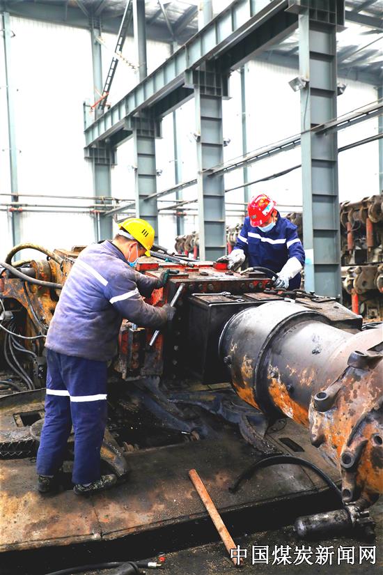 【本网讯】为最大限度减轻疫情给企业发展带来的不利影响,河南能源焦煤集团赵固一矿利用技术攻关,突破设备维修难题,打开创效空间,切实降低大型设备维修费用,最大限度降低成本,创造了良好的经济效益。图为3月4日,该矿机修车间组织员工自行维修回收上井的综掘机。