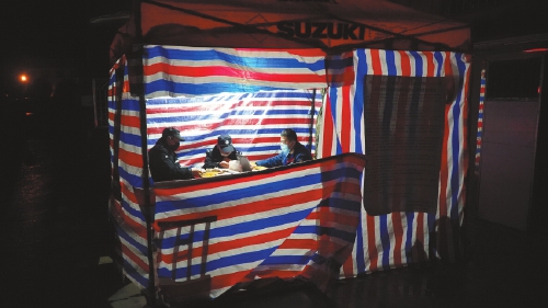 一间简易的帐篷房、一张登记桌,就是临时党支部的阵地。
