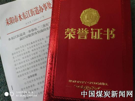 3月13日,湘煤集团白山坪公司扶贫工作队队长颜永水在耒阳市水东江办事处扶贫攻坚表彰会上,再获2019年度“脱贫攻坚工作先进工作队员”荣誉称号。
