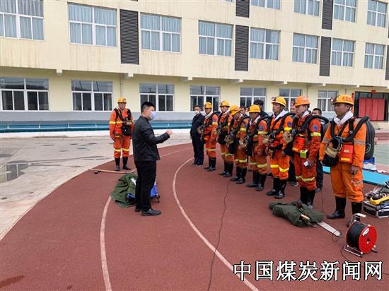 演练由战训副主任牵头,战训部、安全技术部组织实施,从接警记录、发出警报、列队集合、清点人数、事故通报、登车出动、快速着装、带齐装备到战前检查、领受任务、下井准备,严格按照《矿山救护质量标准化考核规范》和有关规定执行。下井准备结束后,战训部对指战员的氧气呼吸器和个人分管的装备气密性进行了检查,安全技术部现场抽查了四小时氧气呼吸器互换氧气瓶、四小时氧气呼吸器换两小时氧气呼吸器操作演练,查找问题、改正不足,增强演练效果。