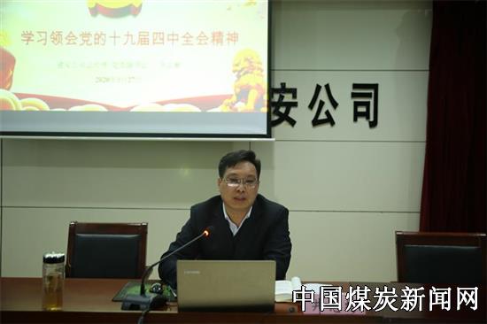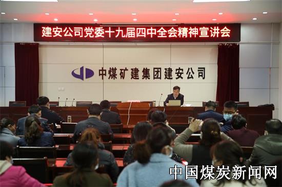 【本网讯】 3月27日下午,中煤三建建安公司党委在机关三楼大会议室召开宣讲会,公司党委副书记、总经理井志彬宣讲党的十九届四中全会精神。公司班子成员、机关及储运公司全部党员干部60余人聆听宣讲。