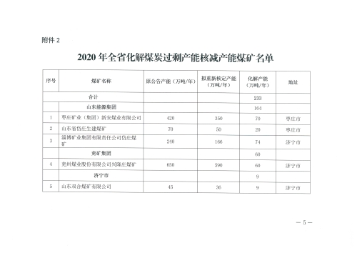 日前,山东省发展改革委公布了2020年全省化解煤炭过剩产能工作目标任务,今年全省计划化解煤炭过剩产能994万吨,其中关闭退出煤矿7处,化解产能761万吨;核减产能煤矿5处,化解过剩产能233万吨。