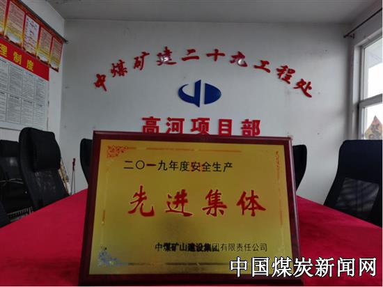 【本网讯】日前,中煤三建二十九工程处高河项目部获得中煤矿建集团表彰,被授予2019年度“安全生产先进集体”荣誉称号。