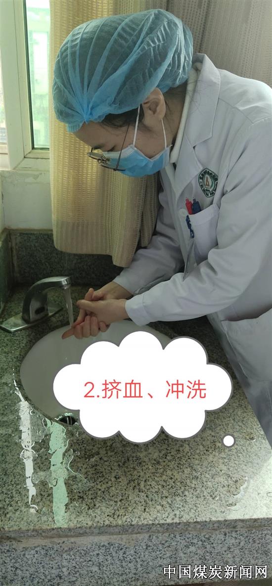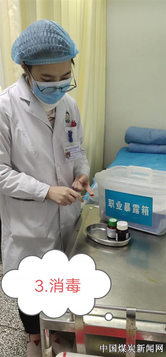模拟演练是假设中西医结合科医生在给病人针灸操作的过程中,不慎被病人使用后的针头刺伤手指,随后立即采取应急处置措施,并向感控科、预防保健科上报。