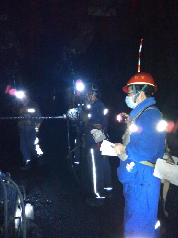 (分局主要负责人许振宏在井下现场检验卸压钻孔施工)