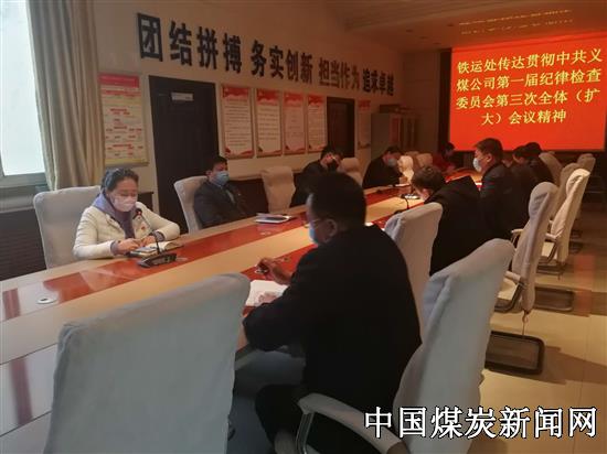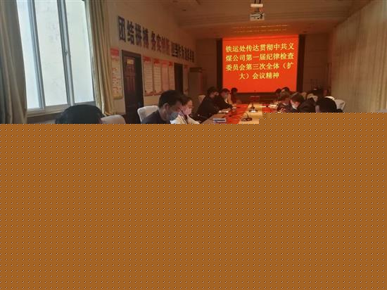 【本网讯】4月10日,河南能源义煤公司铁运处利用早调视频会传达贯彻中共义马煤业集团股份有限公司第一届纪律检查委员会第三次全体(扩大)会议精神。同时,党委副书记、纪委书记戴咏梅要求各支部通过班前会、微信群等多种形式系统学习会议精神,以落实“两个责任”为抓手,持续深化“三转”,一体推进不敢腐、不能腐、不想腐,坚定不移推动全面从严治党向纵深发展,为义煤公司打赢“深化改革、效能提升、风险管控”三大攻坚战提供坚强纪律保障。
