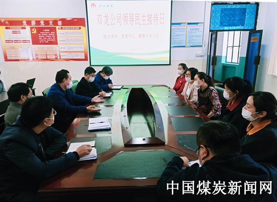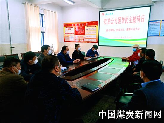 为畅通职工反映渠道,听取职工的意见和建议,及时解决职工的合理诉求,维护职工的合法权益,加强干群关系,促进矿区和谐稳定,推动公司各项工作顺利开展,双龙公司制订了领导“民主接待日”管理制度,规定“民主接待日”每月一次,接待事项范围有对公司贯彻执行国家、集团公司相关政策、法律法规以及有关决定的意见、建议和存在的问题等;对公司安全生产、经营管理、后勤服务等方面提出意见、建议和存在的问题;对公司各项规章制度、工作安排等方面的意见或建议;个人在工作、生活中遇到的需要组织或领导给予帮助的事项等。