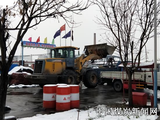 “嗑哒嗑哒...”伴随着一阵胶靴触地紧促有力的脚步声,一群身着工作制服、头戴安全头盔的职工迎着风雪朝着井口大步走去,准备入井工作。与此同时,项目部大院内,地面职工有的忙着加工零件,有的忙着装运井下所需物资,大家不惧风雪,干劲十足。