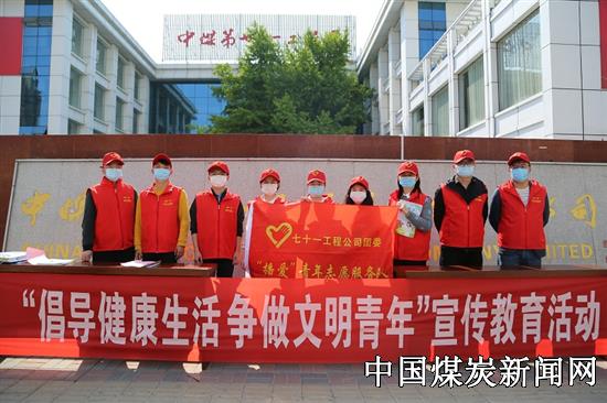 4月28日下午,中煤七十一处团委组织10名青年志愿者在基地附近小区开展了“倡导健康生活 争做文明青年”宣传教育活动。
