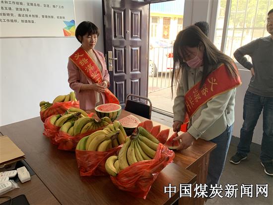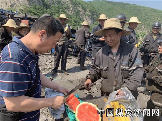 【本网讯】5月1日上午,义煤公司义络煤业工会主席刘慧峰带领工会工作人员,慰问高温下奋战在矸石山皮带改造现场的机电队、运输队职工,为他们送去了公司的关怀及慰问品。