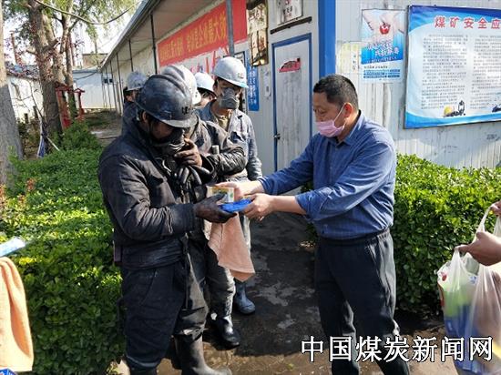 一群身着黑色工作制服,头戴安全头盔的“战斗英雄”刚从百米地下升井归来,项目部车间工会主席樊洪虎和工会委员们便向他们致以节日的祝福和诚挚的问候,并送上洗发水,沐浴液等清凉用品,向仍然在井下一线坚守岗位的矿建“战士”致敬。