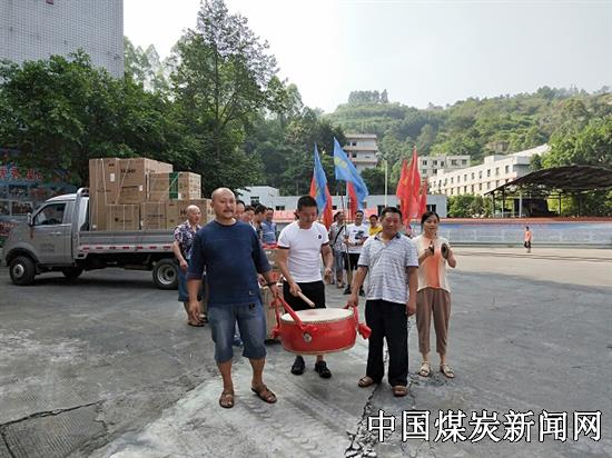 上午10时,矿调度室门口响起了欢乐的锣鼓声,工作人员用大红花对空调进行装饰,敲鼓的、抬空调的、拿着鲁班山北矿旗帜的送奖队伍,浩浩荡荡的向抽采队办公室走去,途中引来不少围观的职工。