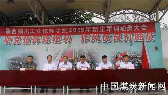 最后,张晓彻同志将代表陕西铜川工业技师学院的旗帜授予姜传勇同志,并宣布军训开始。