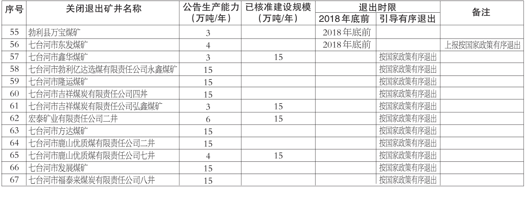 七台河市煤炭行业淘汰落后产能关闭煤矿台账(第一批)公示