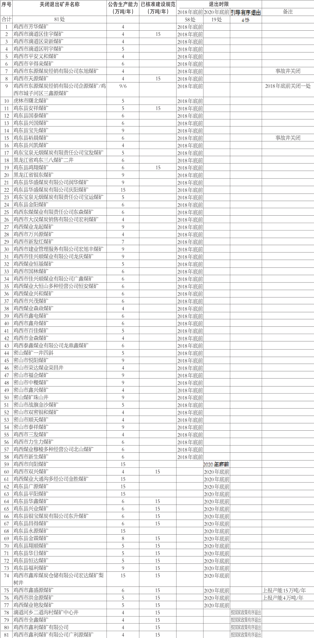 关于鸡西市第一批煤炭行业淘汰落后产能关闭煤矿台账的公告