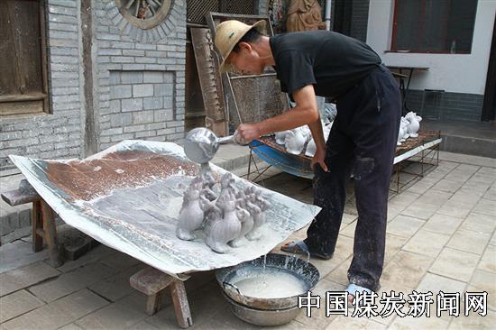 随后,胡新明大师的女儿亲自带领实践团成员们参观基地,并且详细地介绍了泥塑的制作工艺流程。泥塑上华丽的图案都是由老师傅们一笔笔刻画上去,需要细心与耐心,在各个环节上保持全神贯注才能做成完美的作品。实践团成员们亲自动手参与了制作,从抓观音土放入模具到细细按压制作泥塑,再到最后拿起画笔描绘图案......成员们真正地体验到民俗文化的魅力所在。