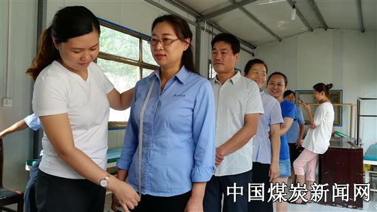 近年来,集团公司在稳步提升效益的同时,始终坚持共赢共享和谐发展理念,稳步提高员工各项工资和福利待遇,坚持为员工更新发放夏季和秋季标志服。图为新郎.希努尔工作人员在集团下辖企业北徐楼煤矿为员工量体。