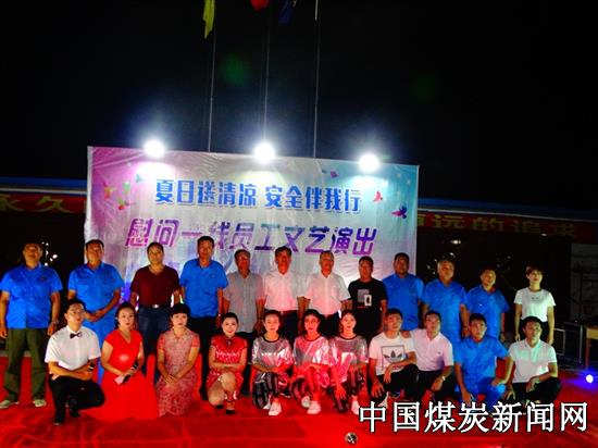 【本网讯】日前,中煤七十一处“夏日送清凉,安全伴我行”慰问演出团一行15人到龙王沟项目部开展慰问演出活动。大唐国源矿业有限责任公司工会主席刘贤祥、安检部长王岸宏、华宇监理总监闫国明、项目部领导班子及广大职工们观看了演出。