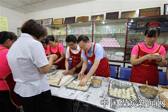 8月30日上午,在一年一度的矿工节来临之际,同煤集团云冈矿在井口服务站开展慰问活动,矿党委书记张栋建、矿长渠贵君、工会主席田燕早早来到井口服务站,和女工安全联保员、家属协管员一起包饺子、煮饺子,并在第一批井下夜班员工出井后,为他们端上热气腾腾的饺子,分发毛巾、香皂、鞋垫等日用品,感谢他们一年来的辛勤工作,嘱咐他们在井下时刻牢记安全生产、按章操作,祝愿他们节日快乐、幸福安康,让员工充分感受到企业的关怀与温暖。