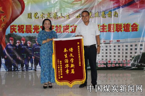 原平市诗歌学会向晨光文艺社赠送祝贺锦旗。