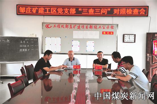 【本网讯】8月31日,根据国资委党委、集团公司党委、工程处党委关于深化“讲忠诚、严纪律、立政德” 警示教育工作的通知要求,安徽淮北矿业工程处邹庄矿建工区党支部召开“三查三问”对照检查会议,党支部书记桂号主持会议,不当班的班子成员参加了会议。