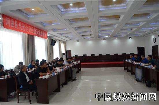 【本网讯】为了认真贯彻落实党的十九大精神,全面提升安全和环保工作,进而保障安全生产和实现绿水青山,8月31日,在河曲县安监局的组织下,县七家洗煤厂(上榆泉洗煤厂、麻地沟煤矿洗煤厂、山煤露天煤矿洗煤厂、桃园华川洗煤厂、旭阳洗煤厂、亿达洗煤厂、隆盛洗煤厂)齐聚沙坪洗煤厂召开经验交流观摩会议,学习先进管理经验,进行经验交流,从而提升河曲县洗选企业的安全生产整体管理水平。会议由县安监局纠察队负责人柳兴远主持,县安监局总工程师杜玉良、经营监管股股长王雪峰、沙坪洗煤厂厂长梁艳举、党总支专职副书记王贵平、安全副厂长张国宏,以及七家洗煤厂企业负责人参加了会议。