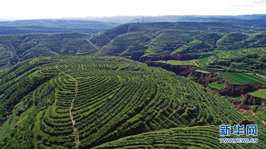 宁夏彭阳县金鸡坪梯田公园(7月16日无人机拍摄)。