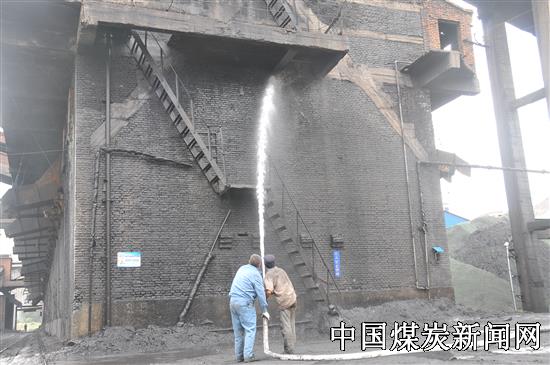 【本网讯】为进一步落实环保工作,加强环保责任意识,切实将“绿水青山就是金山银山”这一思想落实到矿井安全生产中,近日,河南能源义煤公司义络煤业将煤场、煤仓及矸石山作为矿区重要污染源进行治理,采取洒水降尘、覆盖防尘和安装喷洒装置等综合防尘举措,从源头治理矿区产尘源头。图为该公司运销中心人员正在对煤仓外墙进行冲刷降尘。