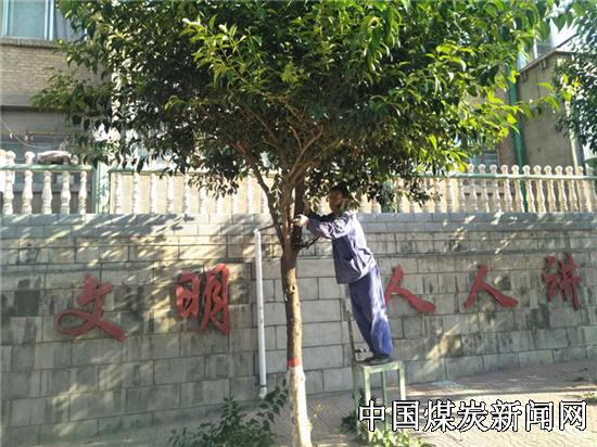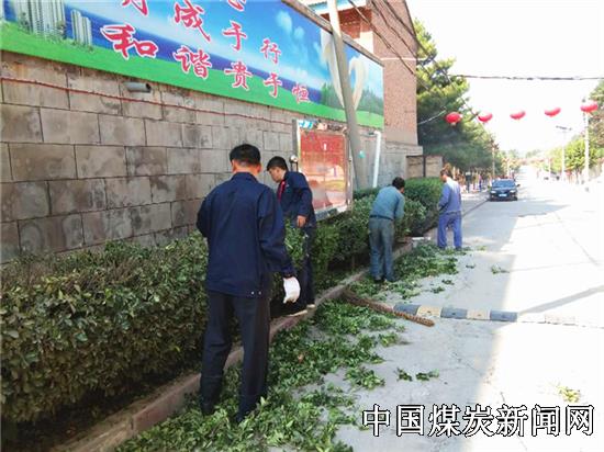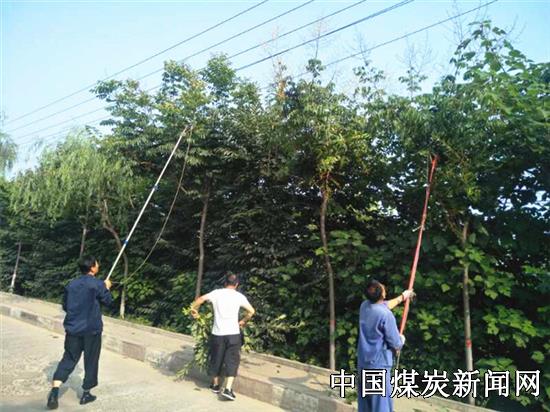 蒲白马南社区组织人员对住宅区道路两旁的树木和花草进行修剪,美化居住环境。