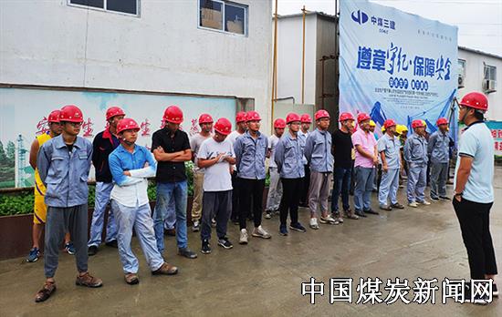【本网讯】每天清晨6点,中煤三建市政工程公司台州朱家茗居项目部东门前,员工穿戴齐全劳动护具,列队召开班前会。