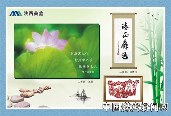 公司全体干部职工积极参与,撰写心得体会文章116篇。以廉洁为主题,突出公司特色、具有较强的思想性和艺术性的廉洁短语共254条。同时,在全公司范围内征集廉洁书画、摄影、剪纸等关于廉洁内容的作品共68幅,包括书法作品,以及漫画、绘画作品。8月份,经过投票和专家组评审相结合的方式对投稿作品和廉洁短语进行了评选,共评选出26幅作品和15条优秀廉洁短语。其中物流园公司王跃年国画作品荣获一等奖;锦阳电厂田博伟的书法作品、生产运营部王淼的摄影作品荣获二等奖;资产财务部马莉娜的剪纸作品、铝镁合金申玉磊、物资部赵敏、规划部崔旭东、铜川铝厂高成刚、铜川铝厂穆东强荣获三等奖。优秀奖二十名进行了表彰。并制作精美展板,在全公司范围内进行巡展,受到广大职工的赞誉。