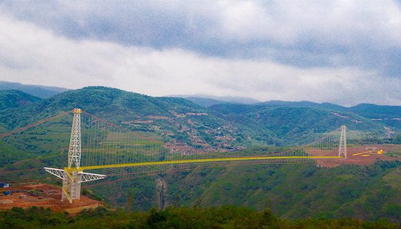 楚攀天然气管道悬索跨越工程。图片来源:中国石油