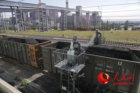 煤炭在柳村南站卸车、装船(人民网 王子侯摄)