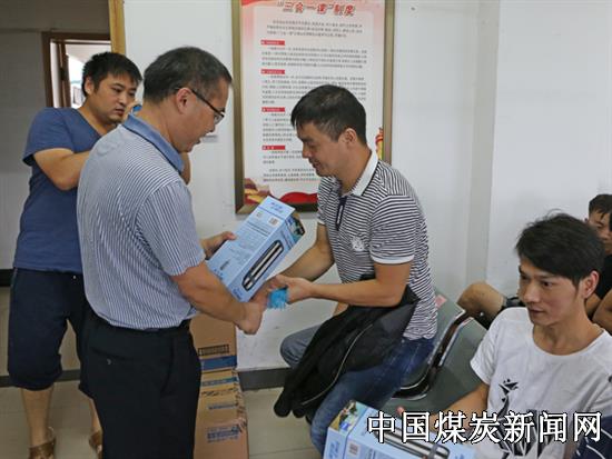 【本网讯】9月6日,皖北煤电集团卧龙湖矿工会主席顾登贤在相关人员陪同下到采煤事业部进行慰问,为干部职工发放了保温杯等慰问品。