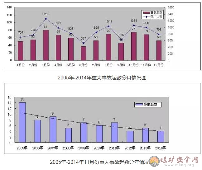 通过对2005年至2014年的11月份重特大事故情况分析,研究发现,11月是重特大事故高发月份。同时,分析表明,近年来,11月份重特大事故呈明显下降趋势,但发生重特大事故的概率仍然较大。