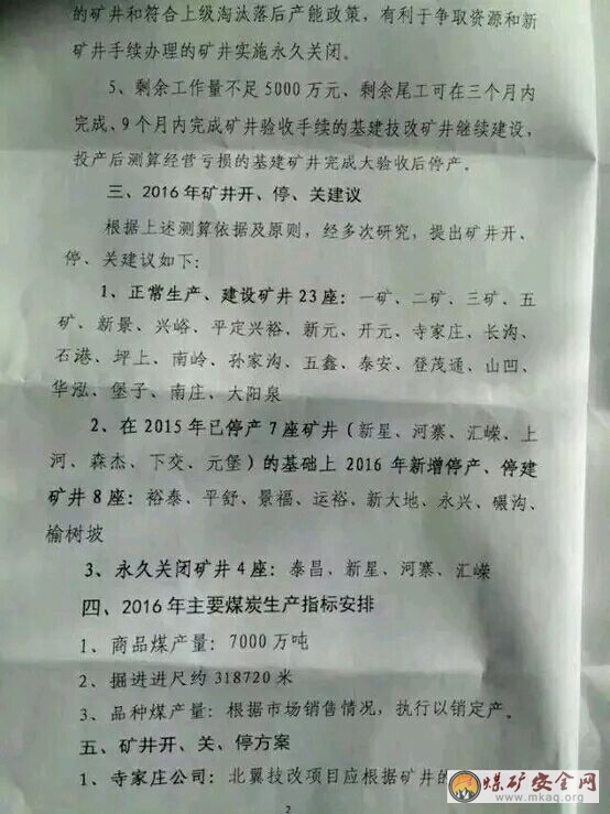 2、在2015年已停产7座煤矿(晋南区域所辖新星、河寨、汇嵘、上河、森杰、下交,晋北区域所辖元堡)的基础上,2016年新增停产、停建煤矿8座:平定裕泰、寿阳平舒、寿阳景福、昔阳运裕、和顺新大地、左权永兴、清徐碾沟、宁武榆树坡。
