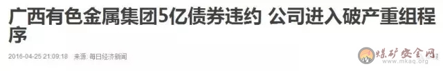 此次广西有色的破产清算,或将对目前债券市场逐渐恢复的信心有所打击。