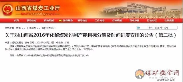 10月13日,山西煤炭厅官网最新公告,山西将再关闭10座煤矿,退出煤炭产能1265万吨/年。